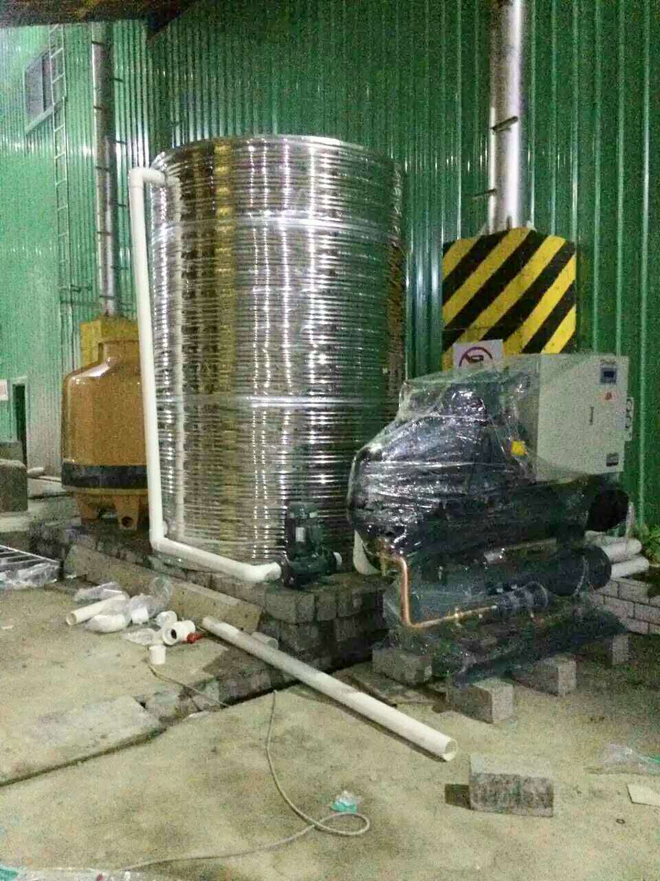 經過供需雙方不斷的計算對比,最終確定選用水冷螺桿式冷水機3臺,并配套冷卻水塔、不銹鋼保溫水箱、循環水泵等輔助設備。